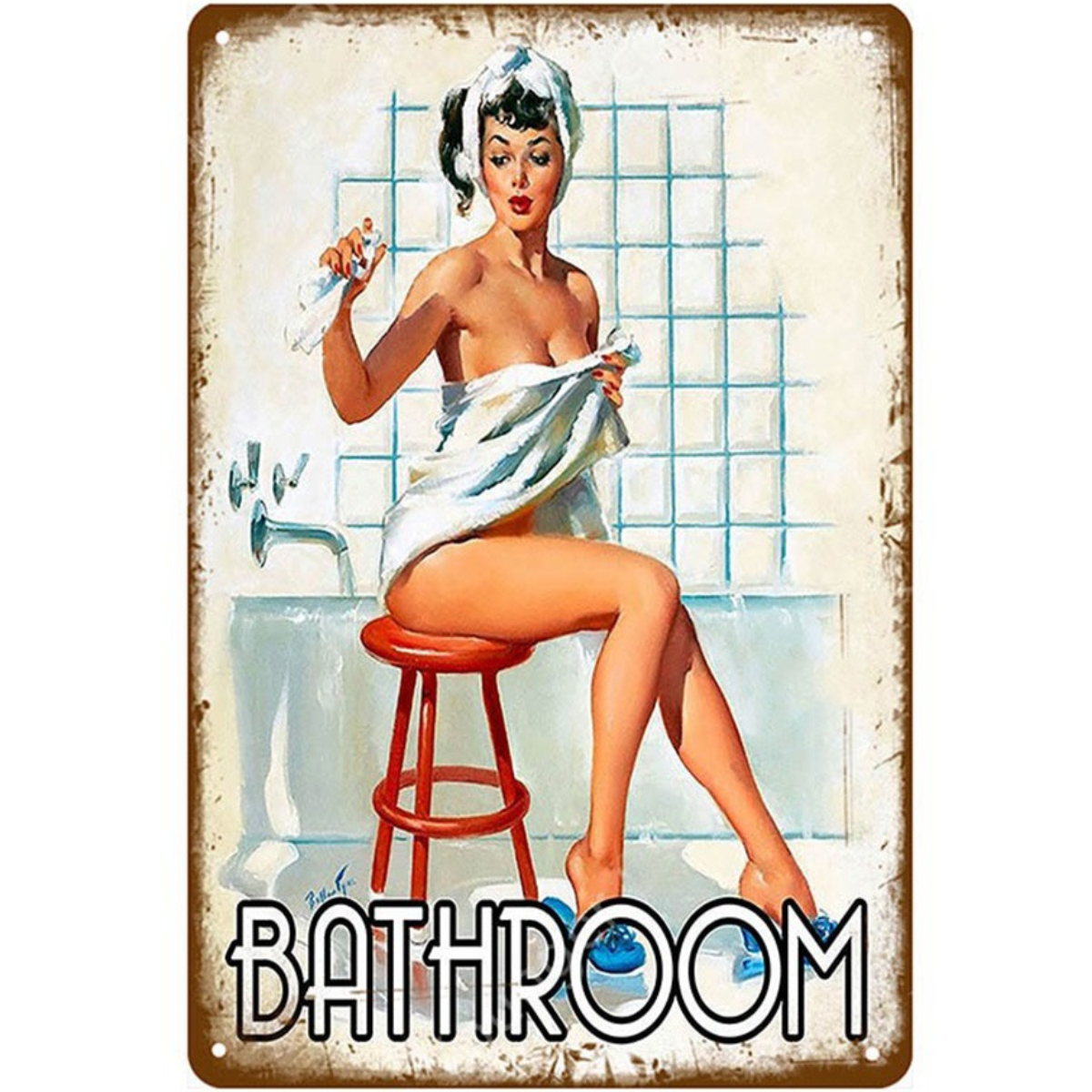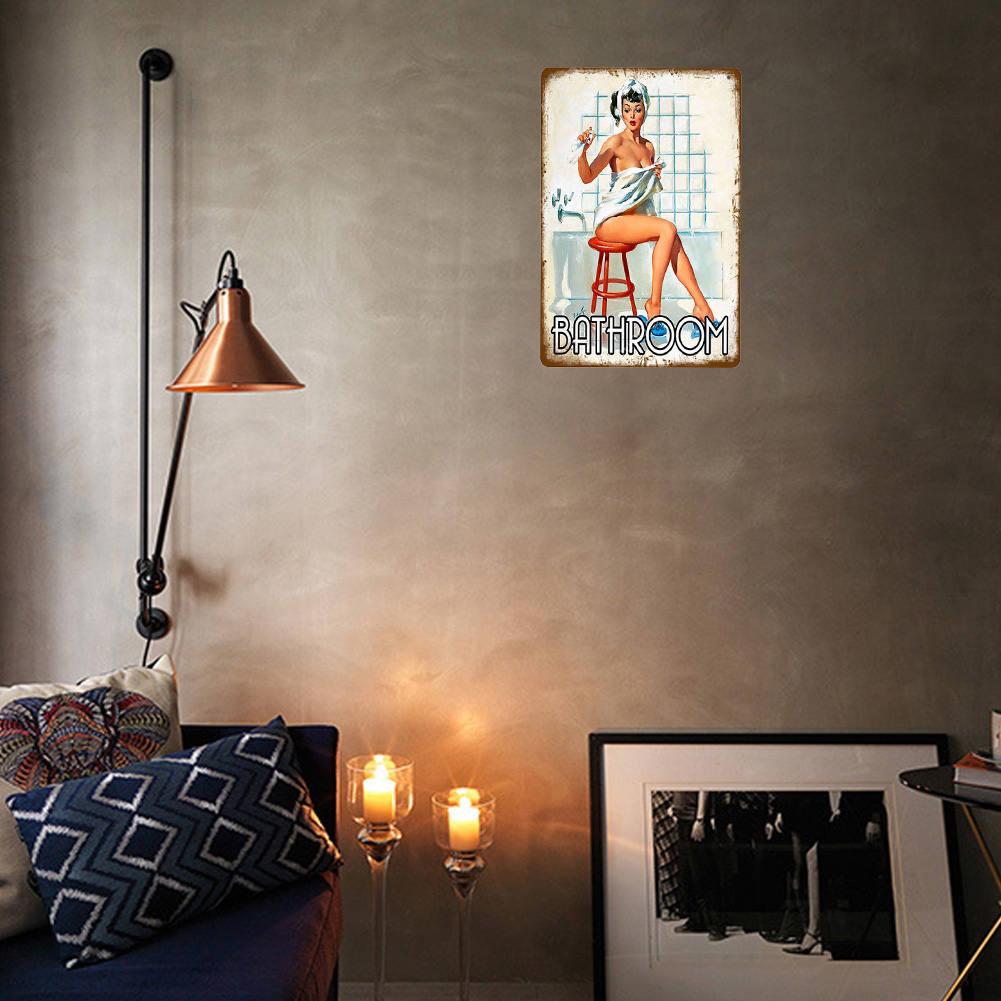 Pin Up Bathroom Girl - Vintage Metal Signs(12*16Inch)-Pin-up-girls
