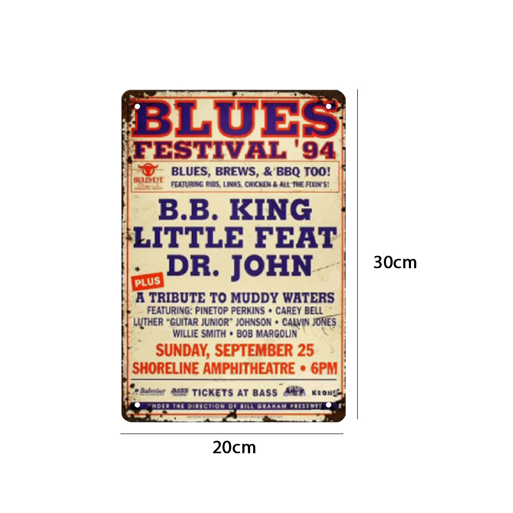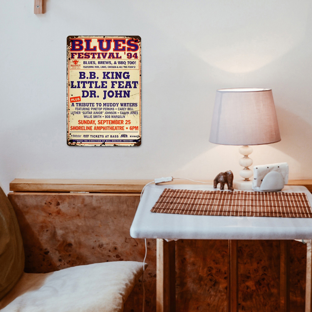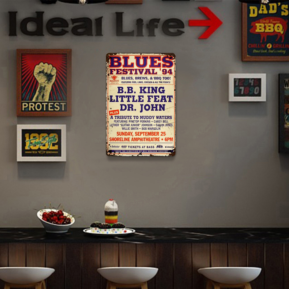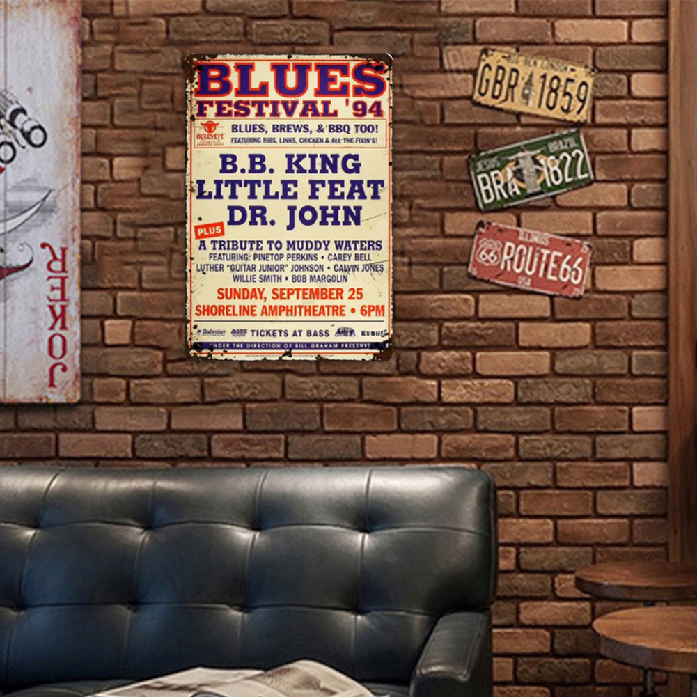 Blues Festival Plate Vintage Metal Tin Sign Plaque for Bar Pub Club Cafe Garage Decorative Iron Painting Wall Home Decor