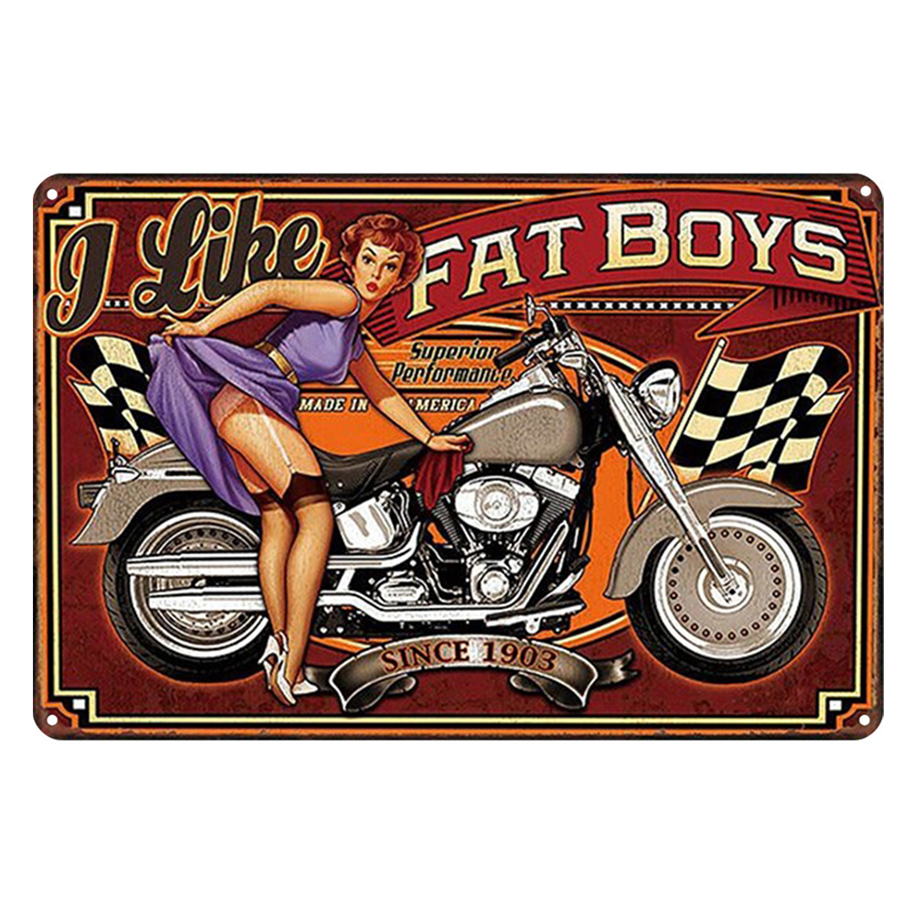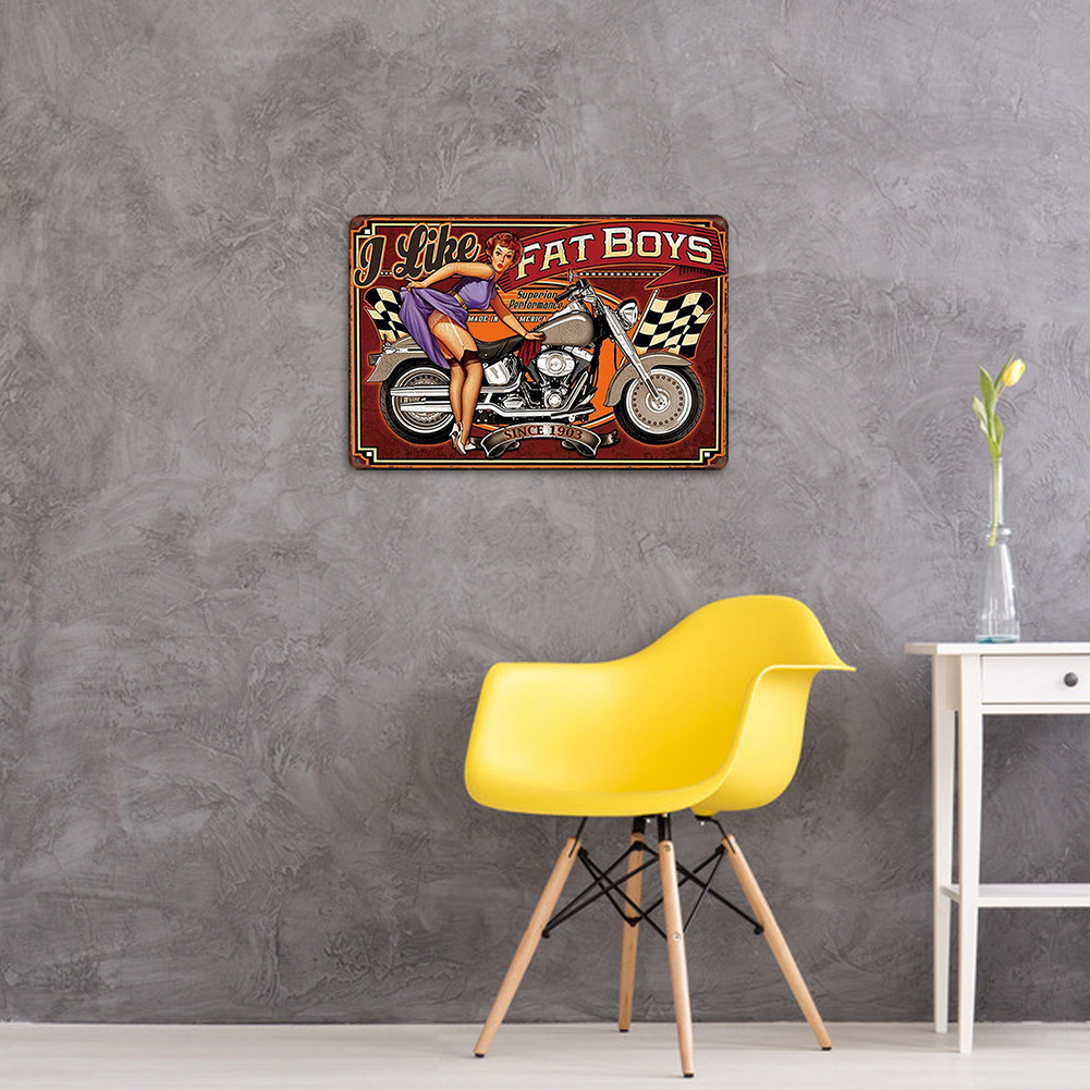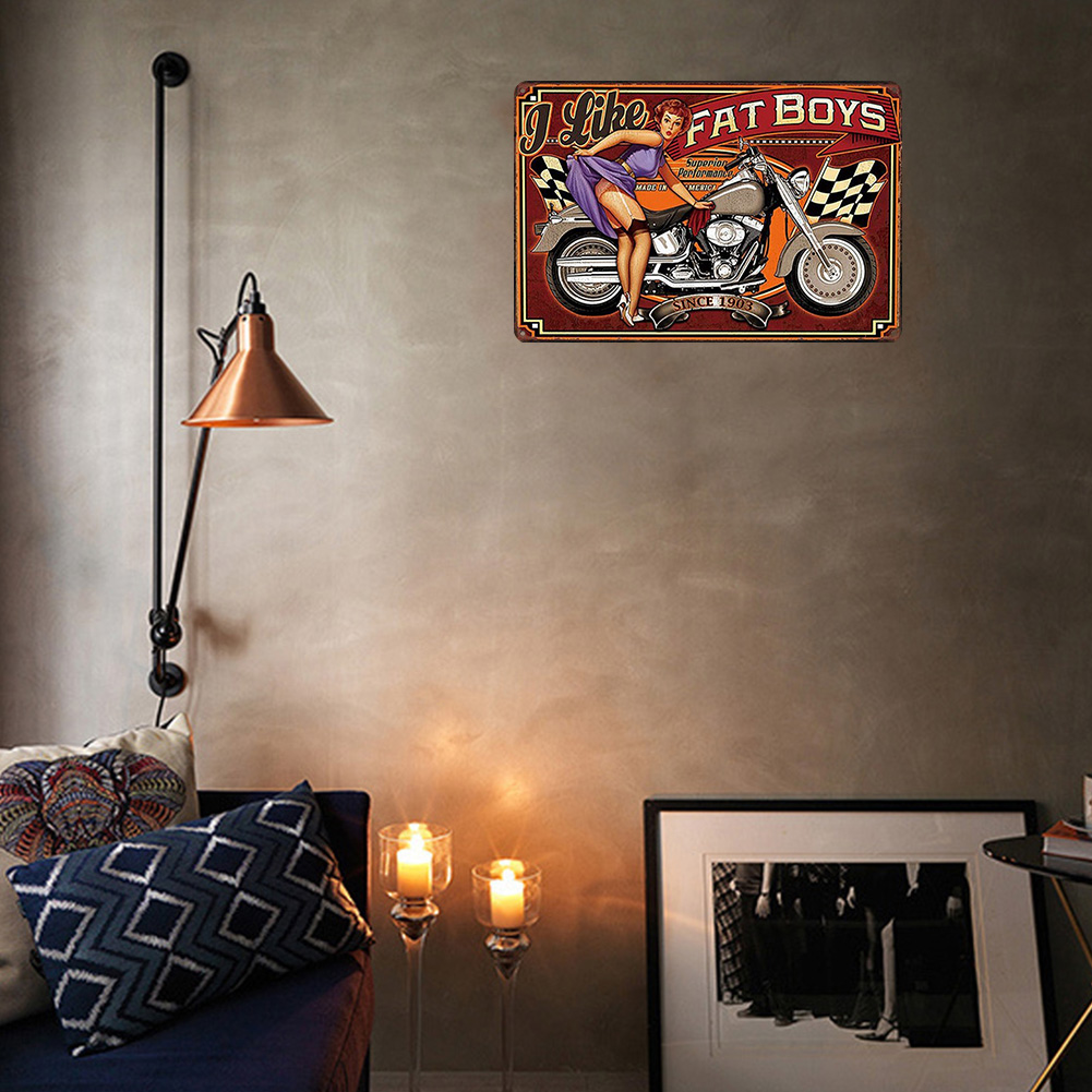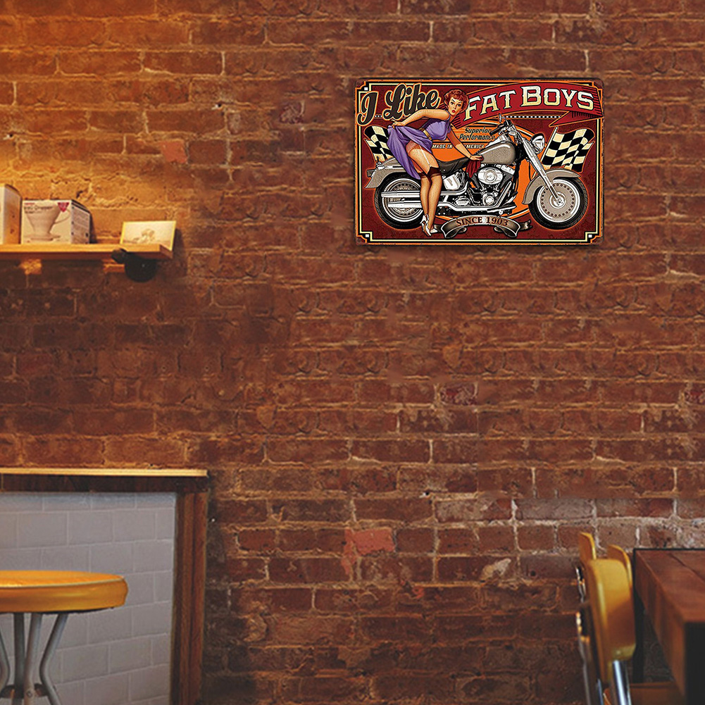 Square Iron Painting Motorcycle Lady Metal Sign Plaque Wall Posters Decor for Home Cafe Bar Club Hotel Home Bedroom Art Wall Painting DecorationFeature:Creative patterns and text are printed on the iron plate.Unique and stylish decorative wall signs can be used in bars, cafes, restaurants, billiards villas, hotels, clubs, etc.Metal signs are popular retro goods that bring fashion and personality to your house.To decorate your house, bar or shop, this artwork will create an ideal nostalgic atmosphere for you.Made of high-quality metal, wall signs have a long service life. Even in rain or sunny days, it will not fade or rust.Waterproof, anti-glare, easy to clean, durable, high temperature resistant.Perfect size, suitable for people's attention, and suitable for decorative cards.Whether it is a gift for a loved one or a gift for family, these are great gifts for birthdays, Christmas or any other time.Four pre-drilled holes are easy to put, and the pre-drilled corner holes are easy to install on walls, doors, gates or fences.Specification:Material: Tinplate/MetalSize: 30 x 20cm/11.8x7.8 inchApplicable scene: home, bar, coffee shop, KTV, etc.Function: door frame, wall hangingNote:It does not include screws.Some retro metal signs are designed with rusty texture, which is not a quality problem.Due to the different monitor and light effect, the actual color of the item might be slightly different from the color showed on the pictures. Thank you!Please allow 1-2cm measuring deviation due to manual measurement.