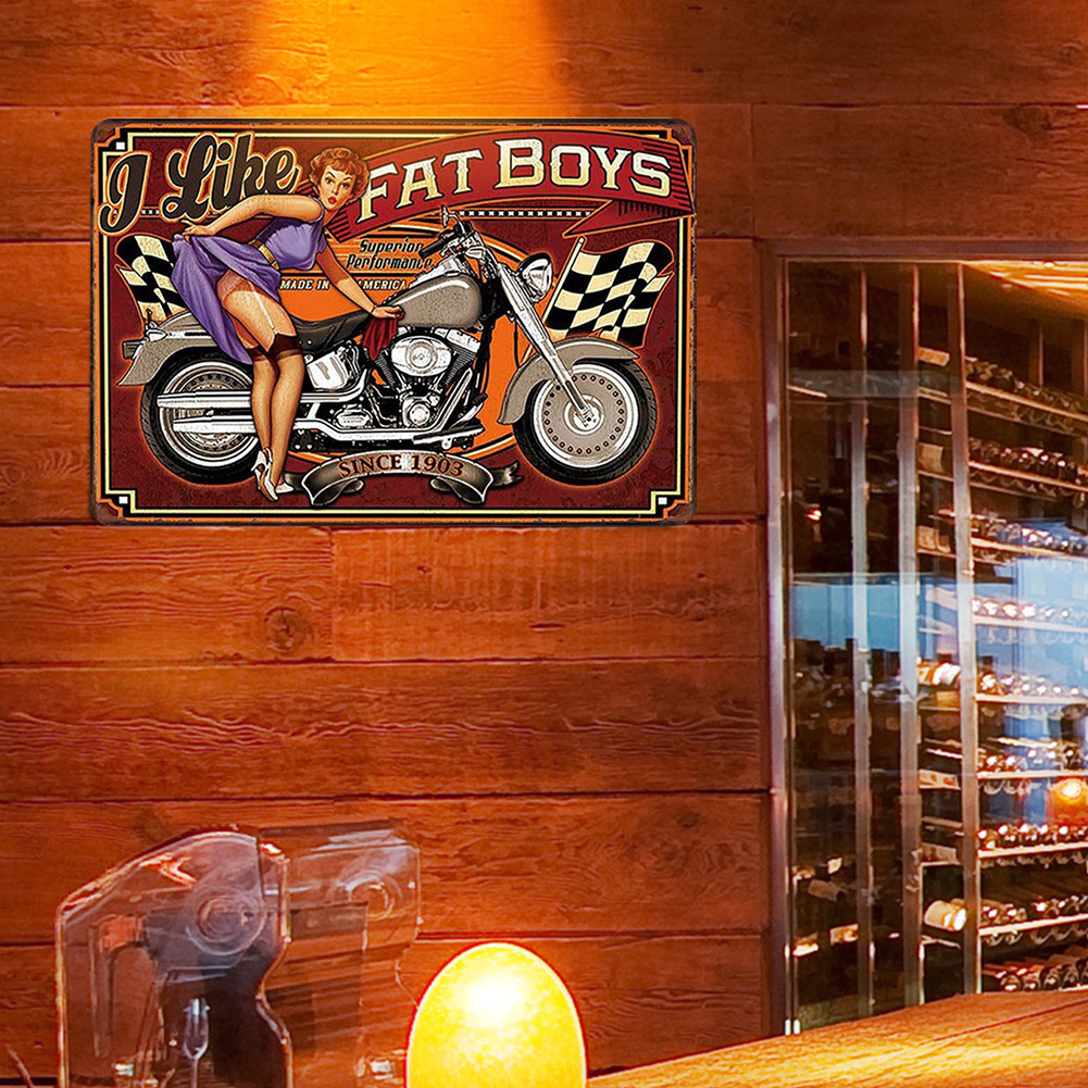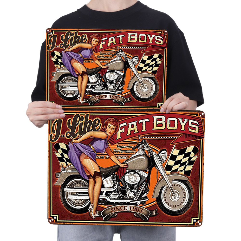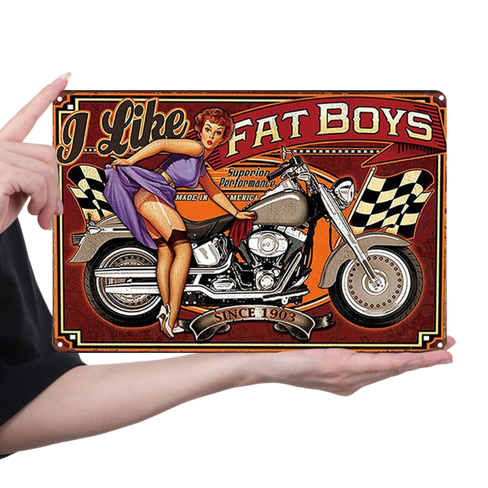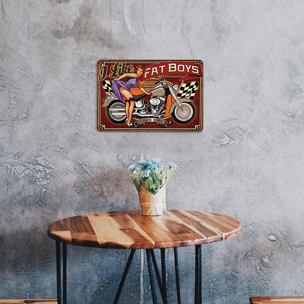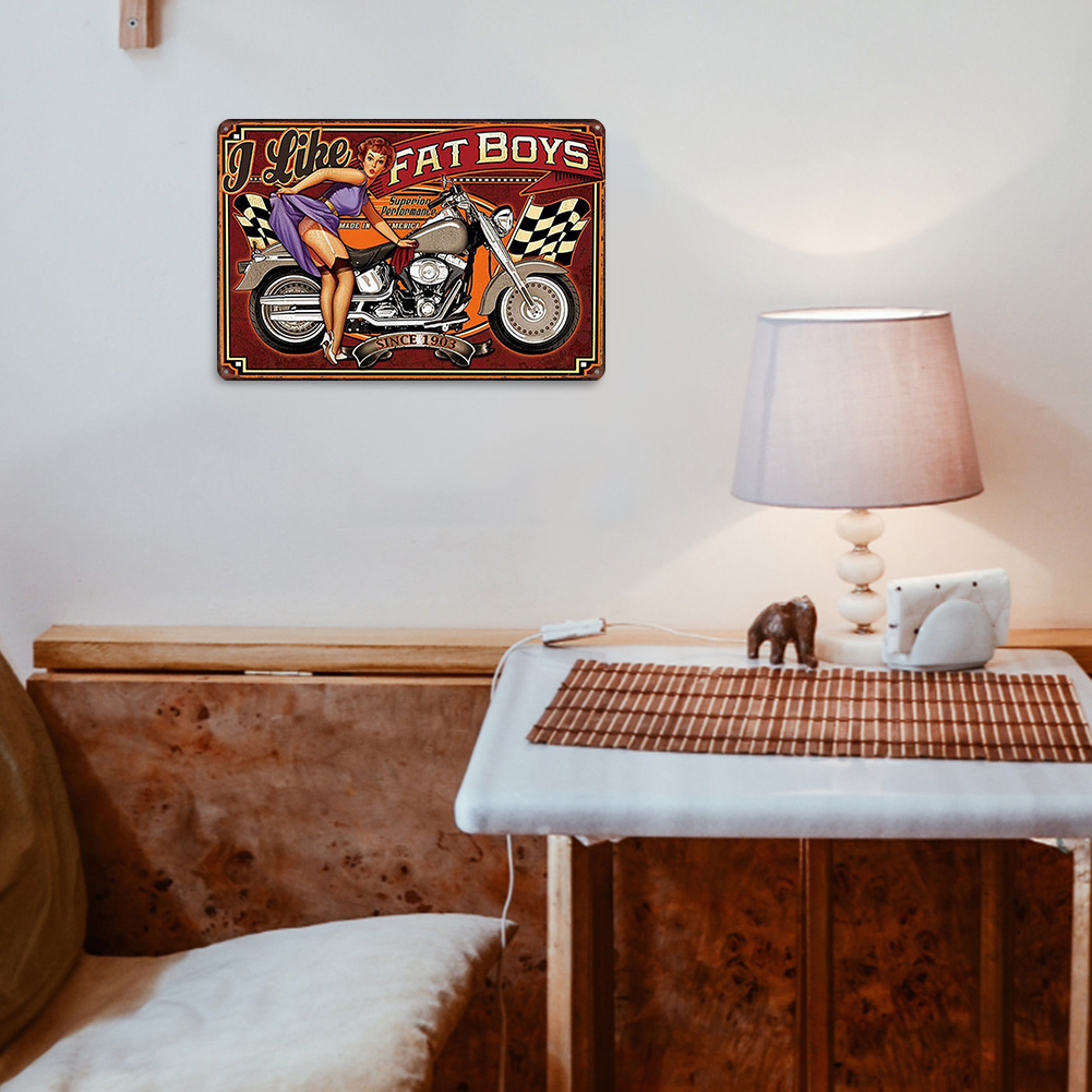Square Iron Painting Motorcycle Lady Metal Sign Plaque Wall Posters Decor for Home Cafe Bar Club Hotel Home Bedroom Art Wall Painting DecorationFeature:Creative patterns and text are printed on the iron plate.Unique and stylish decorative wall signs can be used in bars, cafes, restaurants, billiards villas, hotels, clubs, etc.Metal signs are popular retro goods that bring fashion and personality to your house.To decorate your house, bar or shop, this artwork will create an ideal nostalgic atmosphere for you.Made of high-quality metal, wall signs have a long service life. Even in rain or sunny days, it will not fade or rust.Waterproof, anti-glare, easy to clean, durable, high temperature resistant.Perfect size, suitable for people's attention, and suitable for decorative cards.Whether it is a gift for a loved one or a gift for family, these are great gifts for birthdays, Christmas or any other time.Four pre-drilled holes are easy to put, and the pre-drilled corner holes are easy to install on walls, doors, gates or fences.Specification:Material: Tinplate/MetalSize: 30 x 20cm/11.8x7.8 inchApplicable scene: home, bar, coffee shop, KTV, etc.Function: door frame, wall hangingNote:It does not include screws.Some retro metal signs are designed with rusty texture, which is not a quality problem.Due to the different monitor and light effect, the actual color of the item might be slightly different from the color showed on the pictures. Thank you!Please allow 1-2cm measuring deviation due to manual measurement.