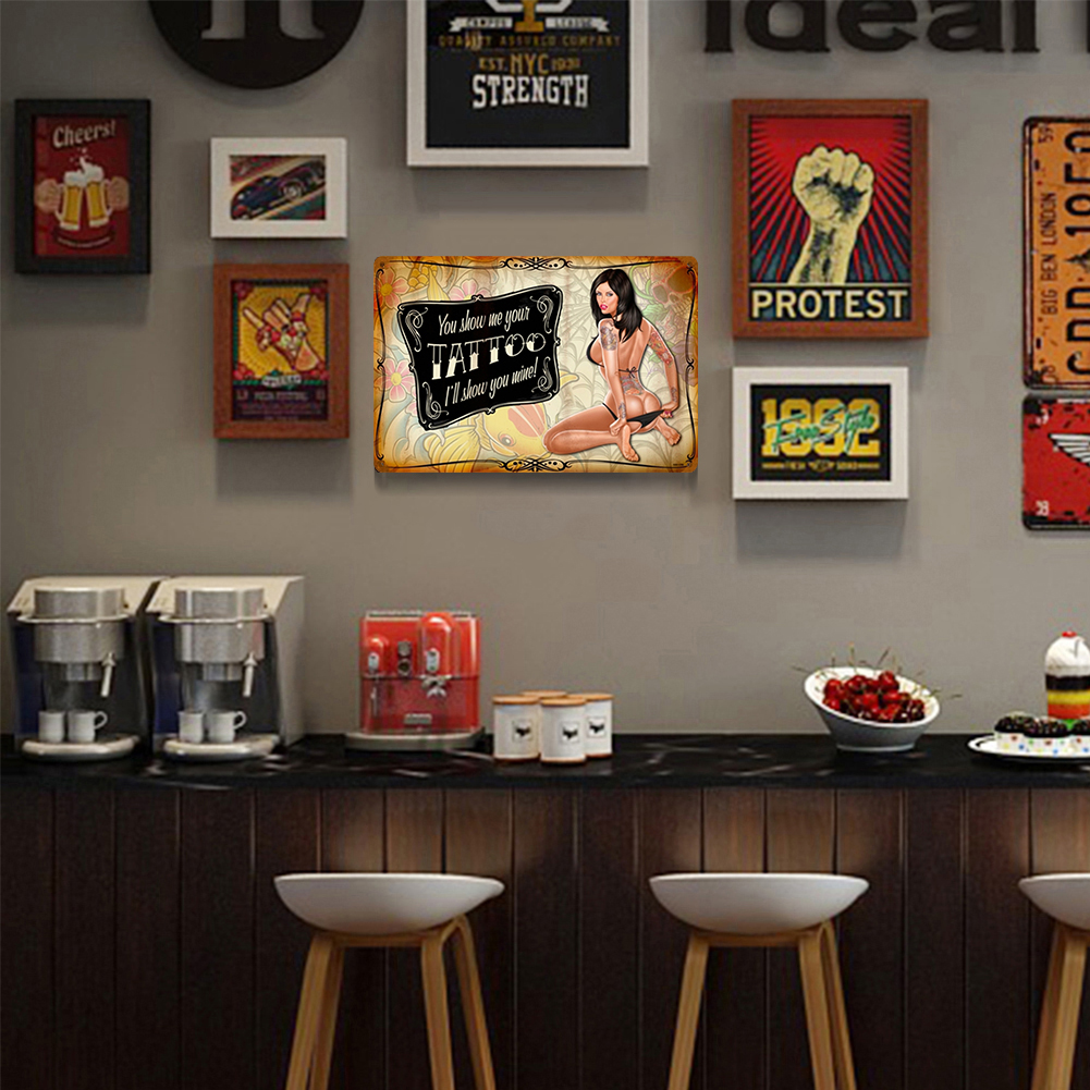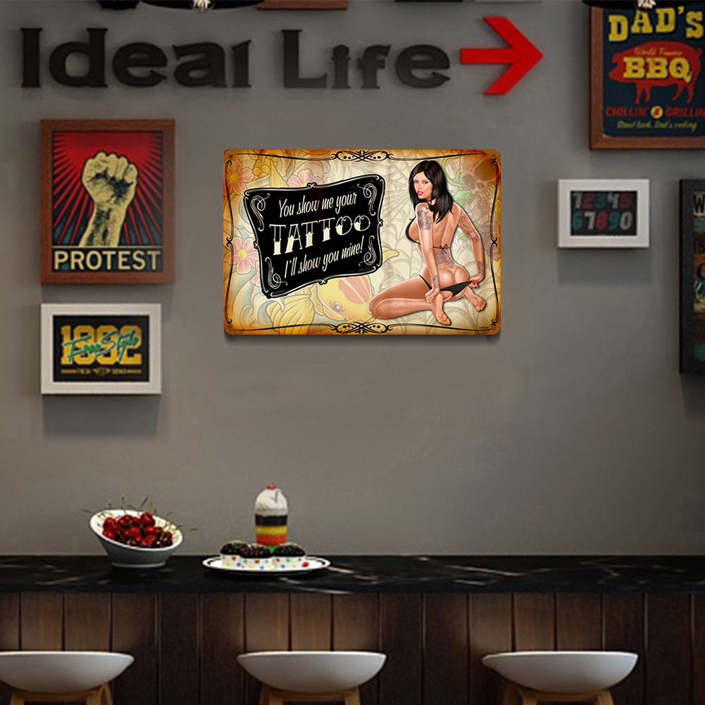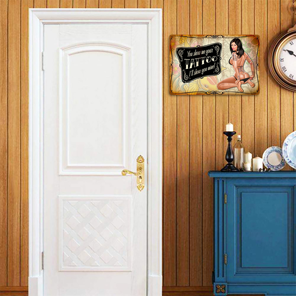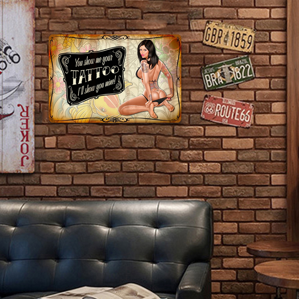 Tattoo Sexy Lady Plate Vintage Metal Tin Sign Plaque for Bar Pub Club Garage Decorative Iron Painting Wall Home Decor